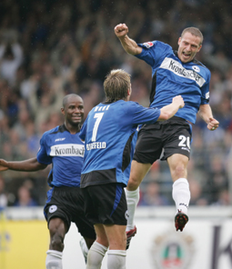 Von der Idee bis zum Baubeginn Schon im Jahr 2003 entwickelte Ulrich Möntmann die Idee zum Endausbau der SchücoArena. Auch angetrieben durch die Entwicklung der neuen WM-Stadien mit dem daraus resultierenden Wettbewerbsnachteil für Arminia Bielefeld ergab sich schnell das Konzept. Den vermeintlichen Nachteil eines innerstädtischen Stadions durch die Nachfrage auf außergewöhnliche Büroflächen positiv wandeln und den ohnehin umbauten Raum einer klassischen Tribüne für diese Flächen nutzen. Im Dach die Sky Offices, in der Zwischenebene die VIP-Offices. Gleichzeitig mit der neuen Arena den Anforderungen der Zuschauer mit neuen Premium- Logen und zeitgemäßen VIP-Räumlichkeiten gerecht zu werden und im Bundesligavergleich wettbewerbsfähig zu bleiben, auch finanzielle Freiheiten zu erlangen um ggf. sportlich besser investieren zu können. Auf dieser Grundlage entstanden im Juli 2004 im Brainstorming erste Skizzen, die 2005 einen Vorplanungsstatus erreichten. Ein Gespräch bei der Bauverwaltung fand positiven Anklang, nicht ohne den Hinweis auf die komplizierte Rechtslage und das Genehmigungsverfahren. Die Geschäftsführung erkannte sofort die Chancen für Arminia und kurze Zeit später erfolgte das grüne Licht auch durch den Vorstand, den Aufsichtsrat und den Verwaltungsrat. Ob der sensiblen Anwohnersituation entwickelte Möntmann Immobilien mit dem Verein hinter verschlossenen Türen fleißig weiter. Im März 2006 dann die erste öffentliche Pressekonferenz mit der Hoffnung auf einen schnellen Baubeginn. Die Anwohnerproblematik musste aber erst in einem schwierigen Mediationsverfahren beim Verwaltungsgericht Minden gelöst werden. Dank großem Verhandlungsgeschick unseres Präsidenten Hans-Hermann Schwick, Geschäftsführer Roland Kentsch und dem entgegenkommen der Anwohner konnte ein für beide Seiten verträglicher Kompromiss gefunden werden. Die nötigen Genehmigungen sind erteilt und die Grundsteinlegung am 29.06.07 war der Startschuss zum Baubeginn. Mit der Fertigstellung ist Arminia einen großen Schritt in der Wettbewerbsfähigkeit weiter und die Stadt um ein spektakuläres Geschäfts- / Tribünengebäude reicher ! Auf geht´s Arminia !! |